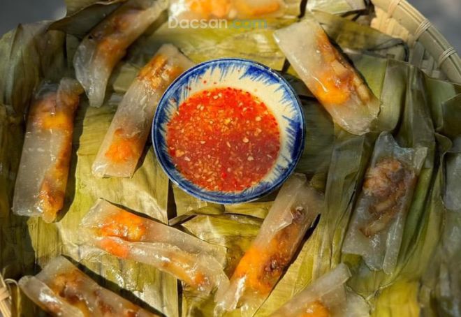 Đặt lá, cho một lớp bột mỏng. Cho nhân tôm thịt vào giữa rồi gói lại. Sau đó, hấp chín và thưởng thức cùng với nước mắm chua ngọt.