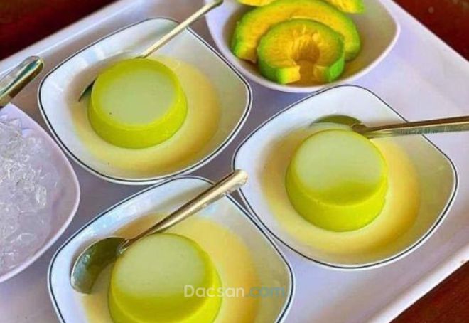 Bánh flan bơ là món tráng miệng có màu xanh mát mắt, hương vị mềm béo núng nính. Ai mà ăn thử thì chỉ có ghiền.