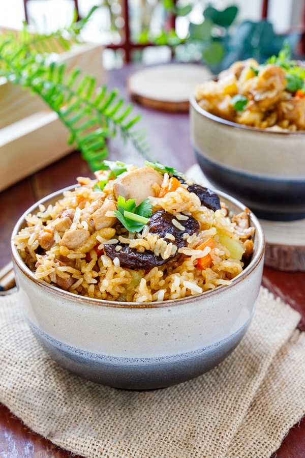 Đây đích thị là món ăn hấp dẫn cho những ngày muốn lười một chút hoặc mệt mỏi. Cơm gà ăn là ghiền với chút thay đổi nhỏ khi mix cùng chả cốm (hoặc chả nấm) cho vị lạ mà ngon tuyệt.