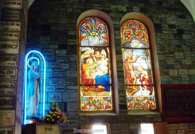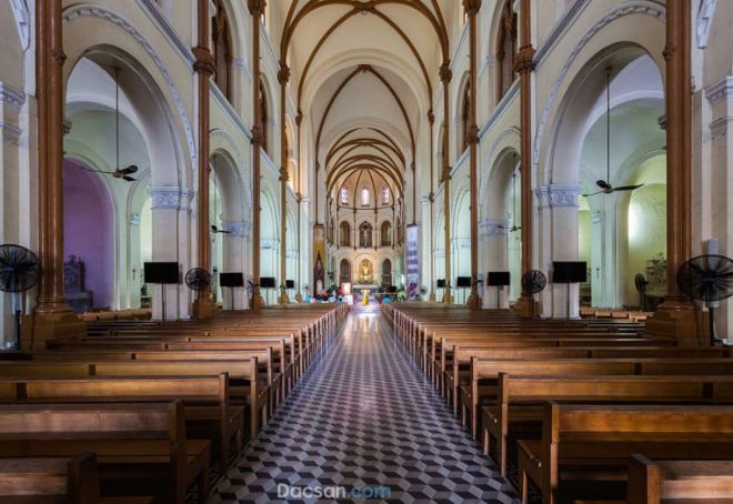 Bên trong, nhà thờ có không gian rộng lớn, với những cột đá cao và những bức tranh thánh tuyệt đẹp.