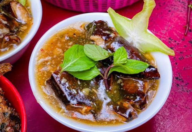 Điều khiến quán tồn tại hơn 30 năm và lúc nào cũng đông khách nằm ở nước sốt. Nước sốt sệt sệt cay cay, làm từ chính nguyên liệu sam biển có vị ngọt ngọt mằn mặn, tê tê. Các thức ăn đi kèm là quẩy và phở cuốn, khế chua, rau sống, ăn cuốn vô cùng.