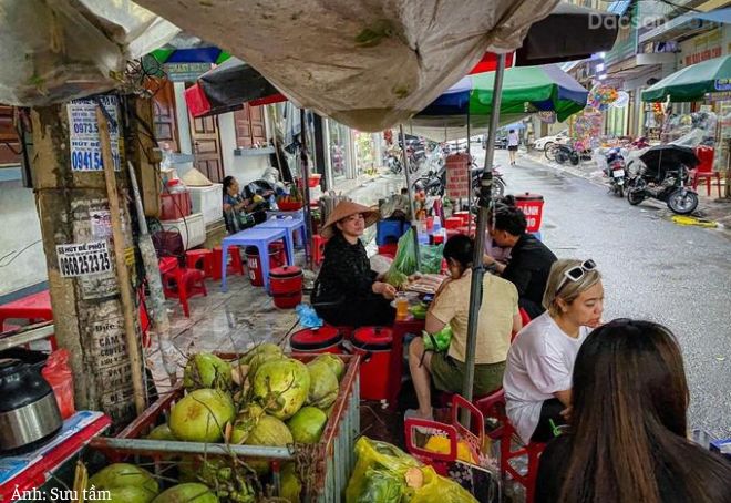 Để không lỡ hẹn thưởng thức chả sam, chân sam tại quán chị Thu, du khách cần tới sớm và xếp hàng. Chủ quán mở hàng từ 16h và bạn phải đợi 20-30 phút mới tới lượt.